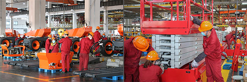 In order to seize the time to catch up the order, according to the production schedule,Zhejiang Dingli's workshops have been working hard to promote production, the scissors lifts, boom lifts and other assembly lines are urgent production.