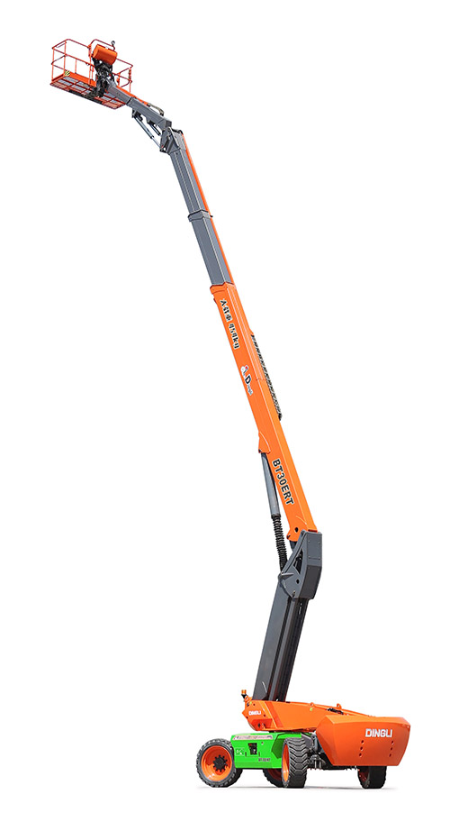 Represented by BT30ERT electric boom lift, there are 14 types (Electric type/Engine type) in the whole series, among which 7 types are electric drive boom lifts and 7 types are engine drive boom lifts. The boom lifts are developed by Italy and Dingli in cooperation with the same platform. The maxi. working height covers 24.3 ~ 30.3 meters and the maximum load is 454kg.